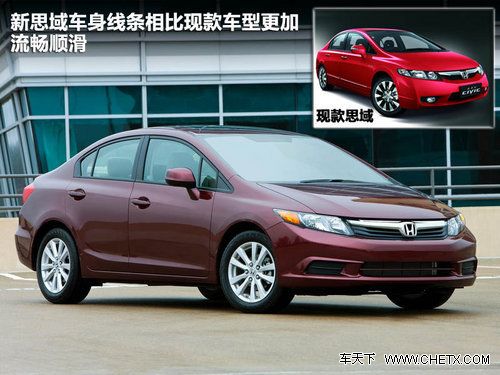 第九代思域的车身轮廓与现款车型非常相近,但是本田的设计师在细节方面赋予了思域更多的变化。本田的工程师在设计新思域时更多地顾及到了空气动力学效果。新思域车身线条相比现款车型更加流畅顺滑。