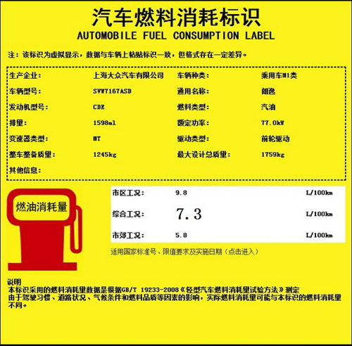 工信部油耗:7.3L