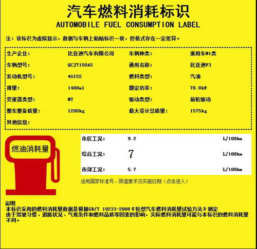 按价格来说,今天我们推荐的第一款车型仍然是一款自主品牌的车型-比亚迪F3。我记得本周出炉的2011年度2月的销量榜上,F3仍旧跻身前5的行列,而且也是唯一一款跻身前十的自主品牌车型。从之前国家工信部公布的油耗数据来看,比亚迪F3的全系手动挡车型的综合工况油耗为7L/100km,整体来说还算是比较省油的车型。