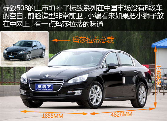 标致508(报价 参数 图片 论坛)的前脸非常霸气,在小狮子的映衬之下显得非常前卫,这一看还真有一点玛莎拉蒂总裁的味道,样子具备了法国的帅气。
