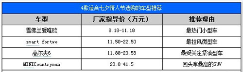 4款不同风格的热门车型推荐浪漫七夕节