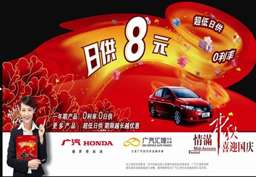 车天下 > 汽车资讯 > 地方汽车导购 > 广本全系掀按揭风暴:日供飞度7元 理念仅5元