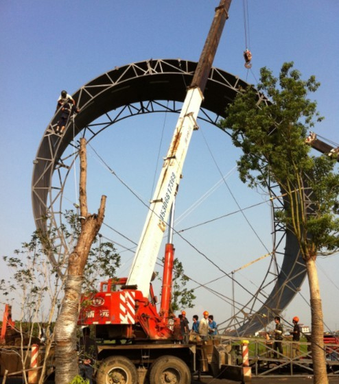 在黄浦江畔,一个超过5层楼高的巨型钢结构环形建筑正显露真容,这将是世界上最高的汽车过山车轨道。据悉,这也将是莲花L5 Sportback上市活动的压轴大戏,为了搭建这个世界最高的汽车过山车轨道,莲花汽车一共耗费了超过30吨钢材,轨道最高处距离地面超过14米。