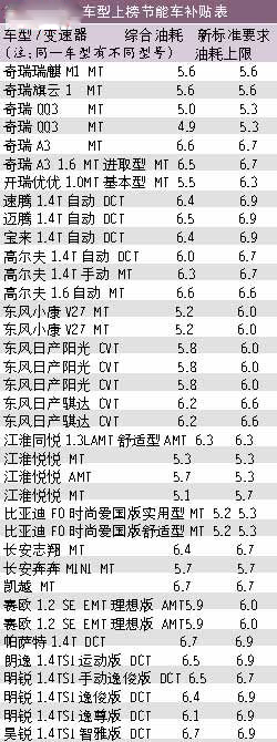 【车天下深圳讯】10月1日起,中国实行新的节能车补贴标准,入围产品的平均油耗门槛将由6.9升提升至6.3升,补贴标准仍为3000元(报价 参数 图片 论坛)/车。百公里0.6L的平均油耗变化就使得近400款“节能车”的帽子被摘掉,享受新的节能车补贴标准的仅剩下37款。