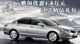 雅阁优惠1.8万元还送精品礼包 现车充足 车天下汽车网 发表于:2010-11-12 09:18 【车天下深圳讯】近日,车天下编辑从深圳广州本田罗湖深业店获悉,现在店内8代雅阁车型现车充足,购车的话可以最高优惠近1.8万元,优惠详情见下表。此价格为全包价格,即包牌包保险,另外还赠送防爆膜、挡泥板、 -