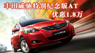 丰田威驰特别纪念版AT优惠1.8万 少量现车 车天下汽车网 发表于:2010-11-16 09:15 【车天下深圳讯】近日,车天下编辑从深圳一汽丰田观澜4S店获悉,现在店内有少量威驰行价车,现车主要是1.3特别纪念版AT 和1.6特别纪念版AT车型,购车可以直接优惠1.8万元,到店洽谈还有更多惊喜。特价车型限量,感兴趣的朋友不要错过机会。 -