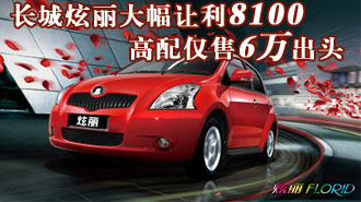 高配仅售6万出头 长城炫丽大幅让利8100 车天下汽车网 发表于:2010-11-22 11:50 【车天下深圳讯】近日,车天下编辑从长城汽车深圳经销商处获悉,近期炫丽继续保持大优惠态势,其中1.5L CVT豪华型更是从6.99万直降至6.18万元,让利幅度在8100元左右。长城炫丽有着年轻的外观和动感的内饰 -