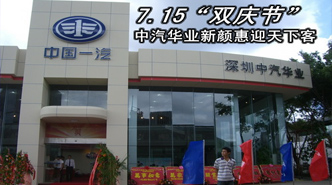 7.15“双庆节”中汽华业新颜惠迎天下客 车天下汽车网 发表于:2010-07-17 10:40 1953年7月15日,中国第一座汽车厂--长春第一汽车制造厂在吉林省长春市奠基,新中国汽车工业开始起步。 -