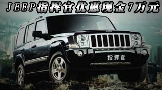 加大优惠幅度!JEEP指挥官优惠现金7万元 车天下汽车网 发表于:2009-11-03 09:19 [车天下深圳行情]由深圳京粤克莱斯勒4S店获悉,该店现有少量吉普指挥官现车销售,现车颜色以黑色、灰色为主,客户现在订购指挥官5.7L车型,最高可优惠现金7万元,4.7L车型暂无现金优惠。