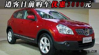 逍客仅有少量现车 目前购车优惠3000元 车天下汽车网 发表于:2009-10-22 10:50 [车天下深圳行情]近期逍客全系的优惠幅度为现金3000元,与前段时间保持一致,在此优惠基础上还可获赠价值数千元的汽车精品。 -