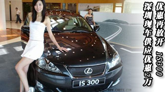 优惠再放开 IS300深圳现车供应优惠2万 车天下汽车网 发表于:2009-10-26 09:30 [车天下深圳行情]从深圳大兴雷克萨斯获悉,现在雷克萨斯IS300车型在前段时间优惠缩减为8000元后,现在又再度放开,全系优惠2万元现金,店内有少量现车供应。 -