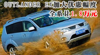 OUTLANDER EX加大优惠幅度 全系让1.8万元 车天下汽车网 发表于:2009-09-22 09:19 [车天下深圳行情]近日编者走访深圳4S店了解到,由于近期2010款OUTLANDEREX现车将在10月初到店,因此目前OUTLANDEREX全系优惠1.8万元,并且购车还赠送万元礼包和发动机保养优惠券,另外店内销售人员介绍,OUTLANDEREX目前有部分现车销售。 -