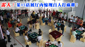 雷人!某4S店展厅内惊现百人打麻将? 车天下汽车网 发表于:2009-09-23 05:58 深业东本麻将大赛现场气氛火热深业东本麻将大赛现场气氛火热 据了解,东风本田深业店近日成功举办了"本田高端轿车思铂睿上市发表会"及"第三届龙华雀神争霸赛"活动 -
