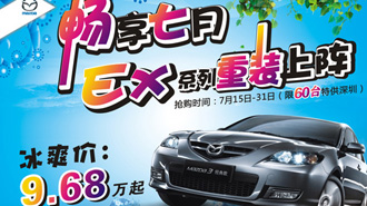 通利华马自达:畅享7月EX系列重装上阵 车天下汽车网 发表于:2011-07-15 01:56 日前,编辑从深圳地区长安马自达经销商通利华集团了解到,该集团近期刚荣膺2011年上半年深圳地区销售服务双冠王,厂家特别奖励该集团60台马自达3EX系列特供车。该版本车型对原车各项配置等进行了升级,融入更多的人性化配置,价格从原有的基础上进行了一定幅度的优惠(马自达3EX系列最低售价仅为9.68万元)! -