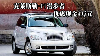 克莱斯勒-PT漫步者优惠现金4万元 深圳现车少 车天下汽车网 发表于:2009-11-19 09:18 [车天下深圳行情]近日编者走访深圳4S店了解到,进口克莱斯勒PT漫步者目前优惠稳定,同前期相比没有大的变化,最高让利现金4万元。 -