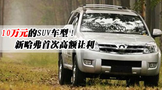 新哈弗首次高额让利 10万元的SUV车型! 车天下汽车网 发表于:2009-10-13 09:28 长城新哈弗作为一款国产自主SUV车型,最低不到10万元的售价对于这样一款硬派越野车来说,确实有着很高的性价比。 -
