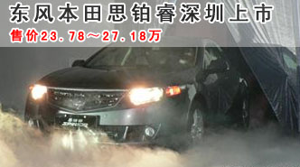 售价23.78-27.18万 东风本田思铂睿深圳上市 车天下汽车网 发表于:2009-09-06 08:44 2009年9月5日,东风本田思铂睿全国统一上市活动在深圳华侨城洲际大酒店举行了隆重的上市仪式。 -