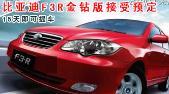 比亚迪F3R金钻版接受预定 15天即可提车 车天下汽车网 发表于:2009-09-08 11:00 [车天下深圳行情]近日编者走访深圳4S店了解到,现在比亚迪F3R推出一款金钻版车型,已经全面接受预订,订金最少5000元。 -