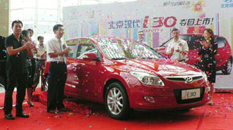 北京现代i30正式上市 售价9.98-14.18万 车天下汽车网 发表于:2009-09-12 11:37 9月9日,被北京现代定位为现代欧版主流两厢家轿的i30在北京科技大学体育馆上市,价格区间覆盖9.98万-14.18万,有1.6L和2.0L两个排量共7款车型,每款车型有海蓝、嫣红、槟银、映灰、谧蓝、莹白、晶银及炫黑8种颜色可供选择。 -